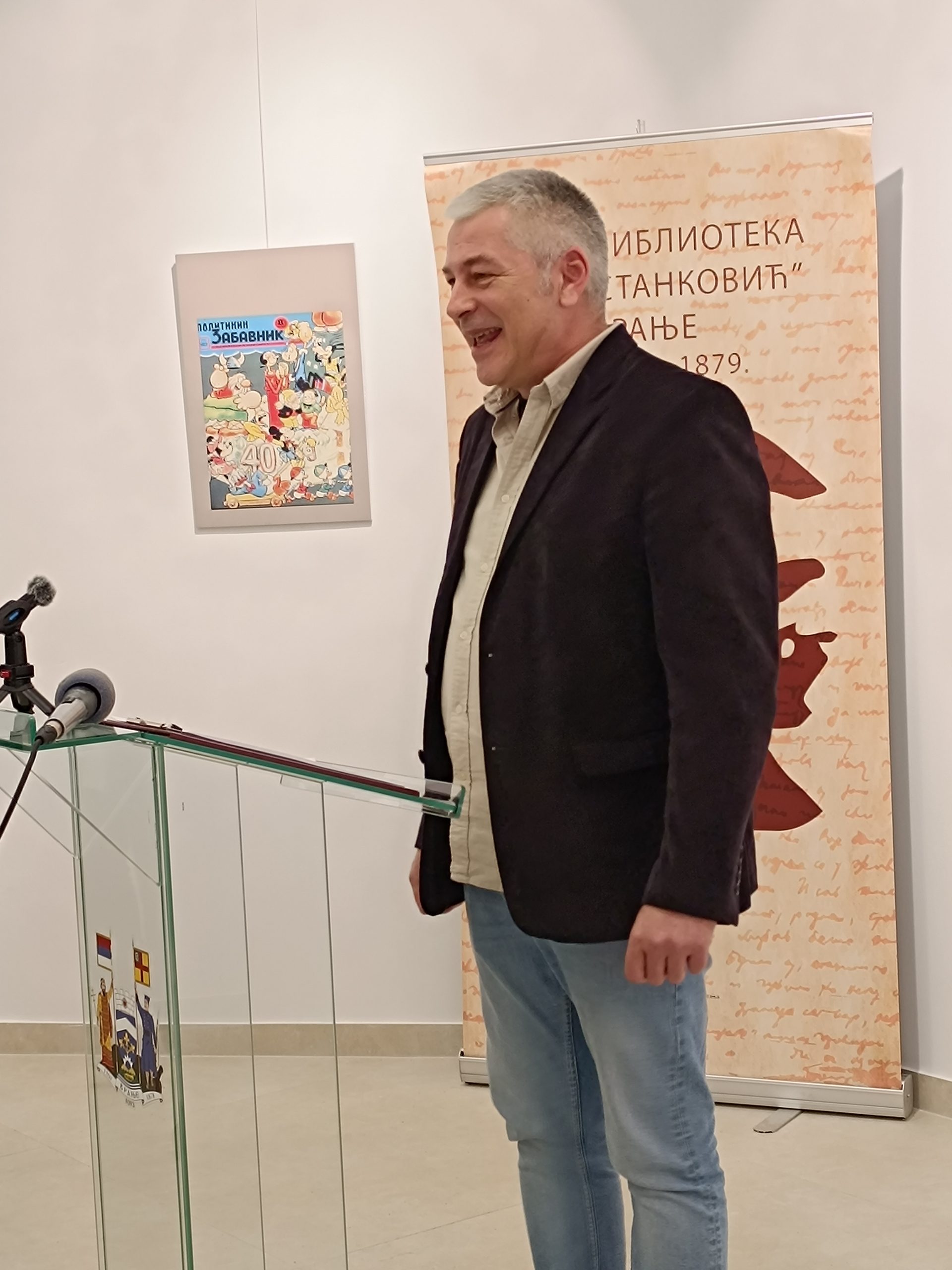 на отварању изложбе Игор Рил, заменик уредника Политикиног забавника.